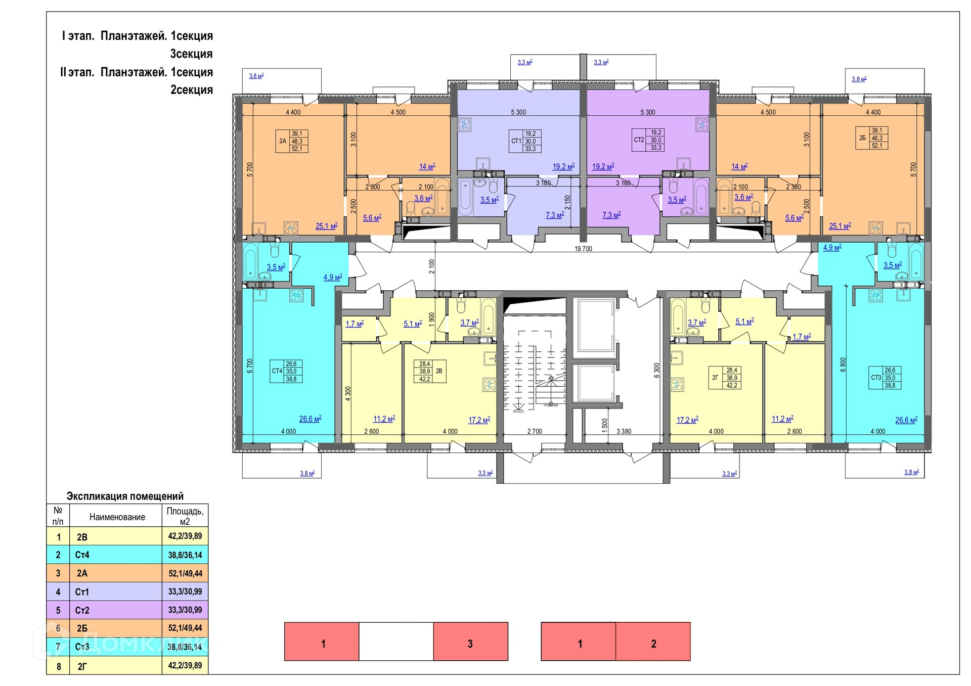Площади квартир