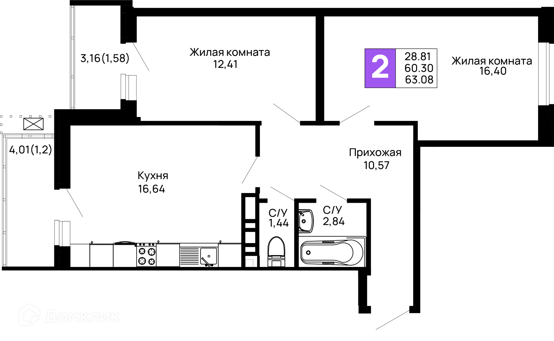 Площади квартир