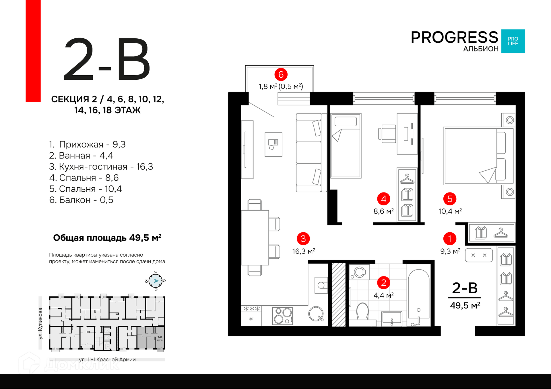 Площади квартир