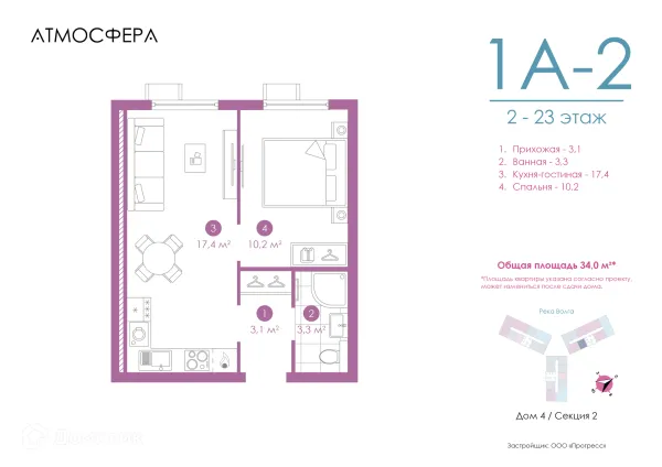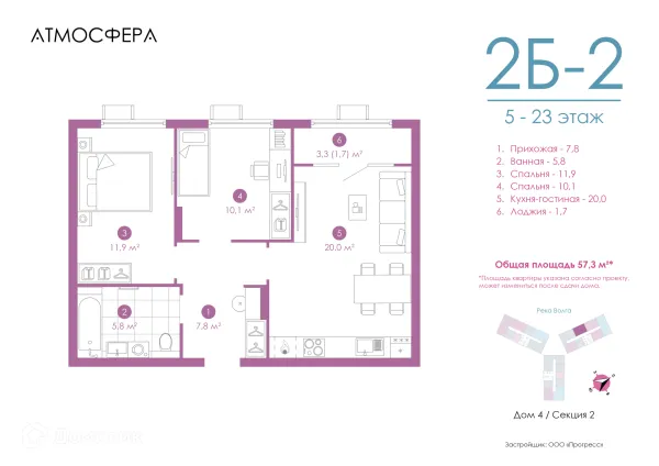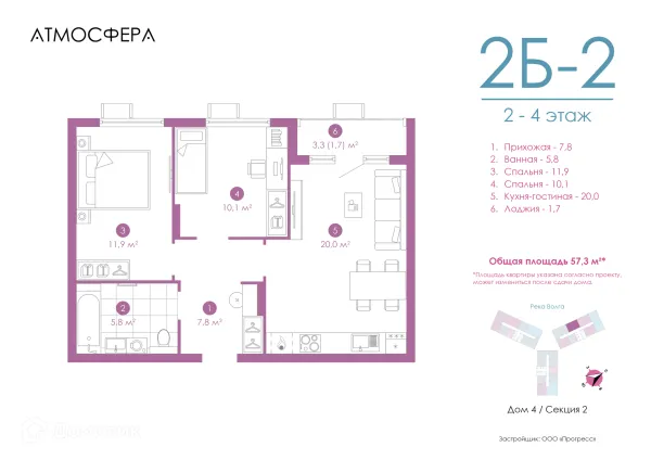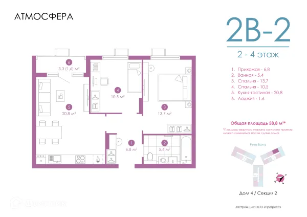 2 комн. квартира в Астрахане в ипотеку от 111 765 руб/месяц