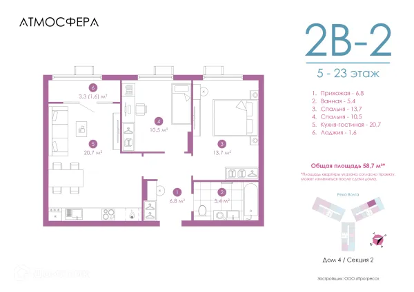 2 комн. квартира в Астрахане в ипотеку от 95 894 руб/месяц