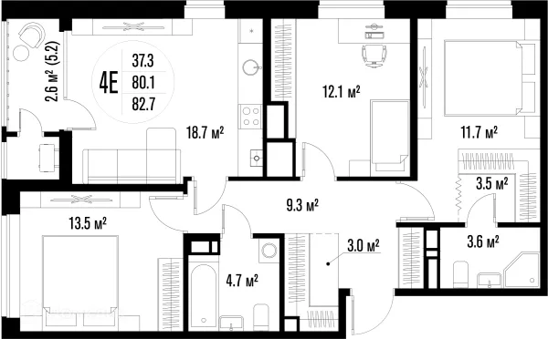 3 комн. квартира в Астрахане в ипотеку от 81 692 руб/месяц