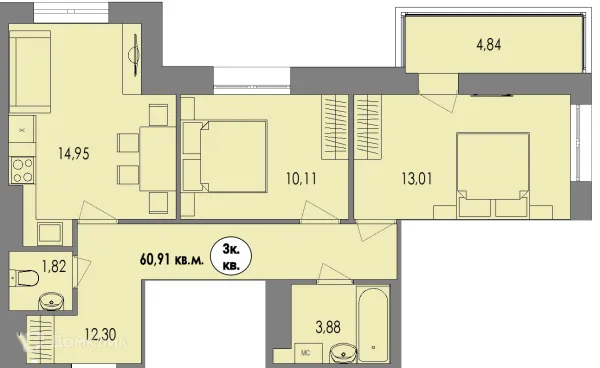3 комн. квартира в Петрозаводске в ипотеку от 67 473 руб/месяц