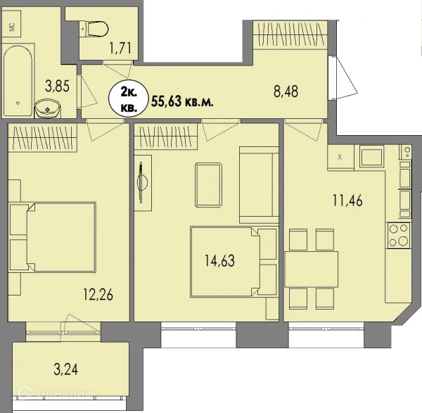 2 комн. квартира в Петрозаводске в ипотеку от 63 152 руб/месяц