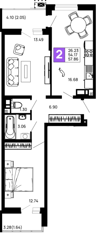 57.86 м²
