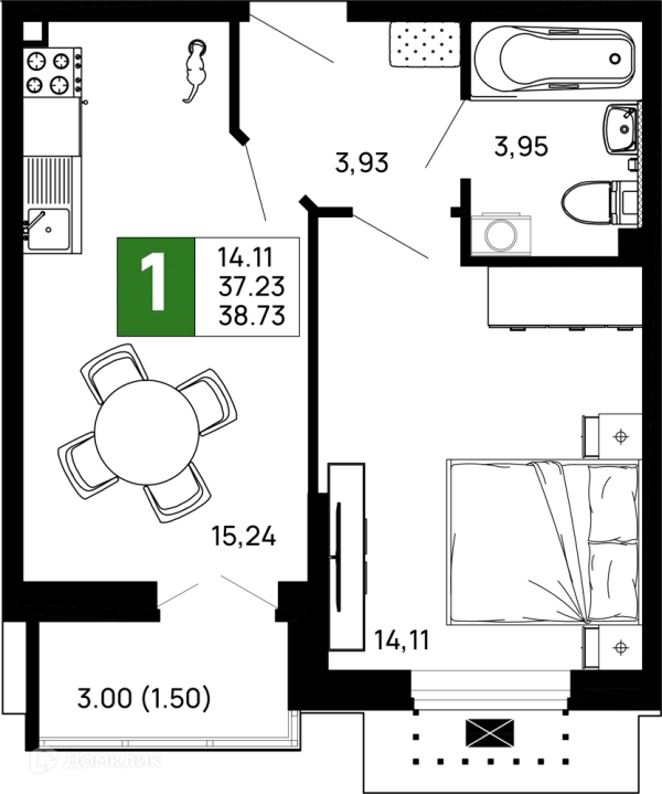 38.73 м²