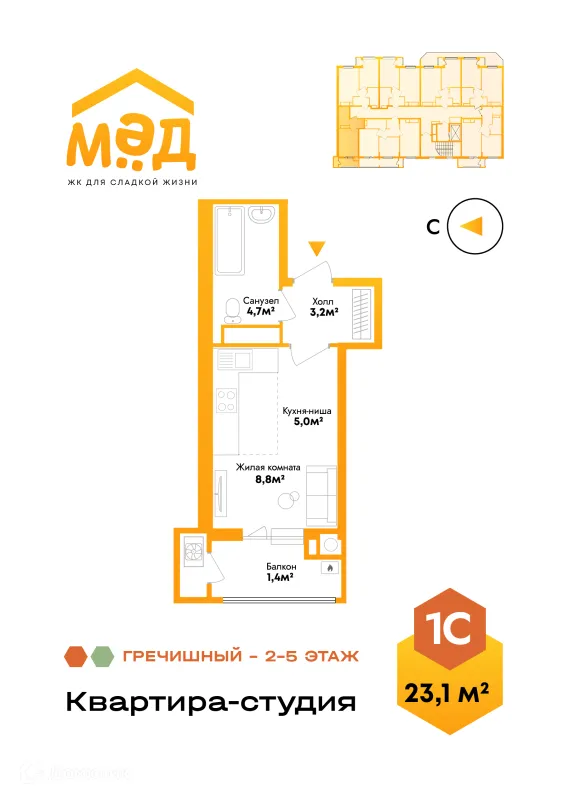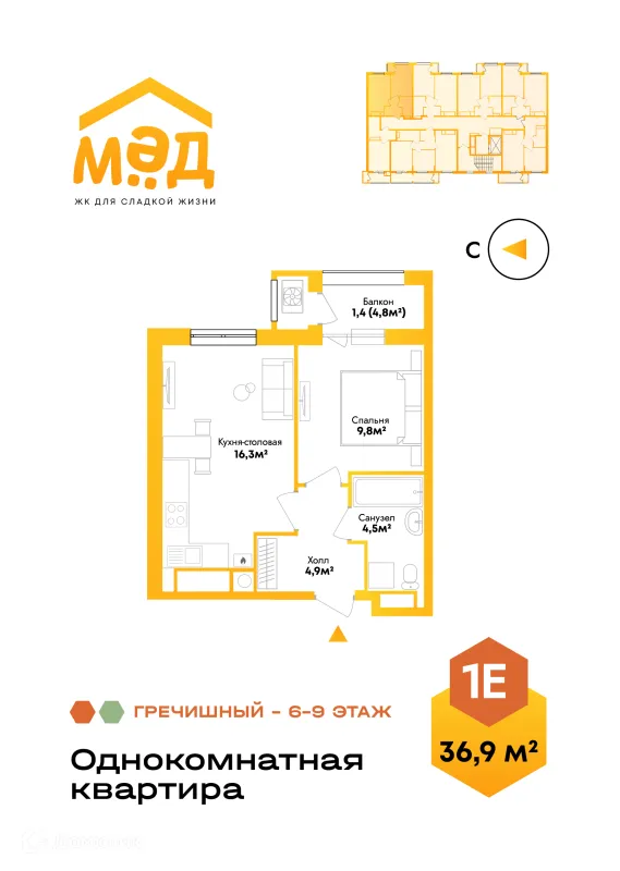 1 комн. квартира в Астрахане в ипотеку от 39 105 руб/месяц