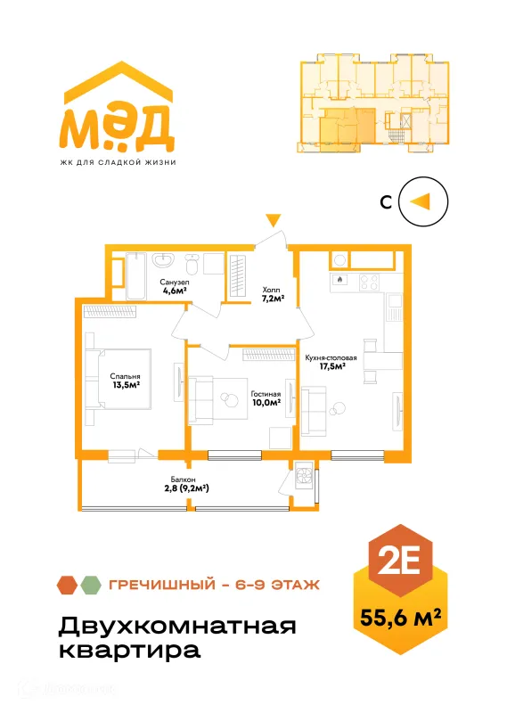 2 комн. квартира в Астрахане в ипотеку от 72 864 руб/месяц